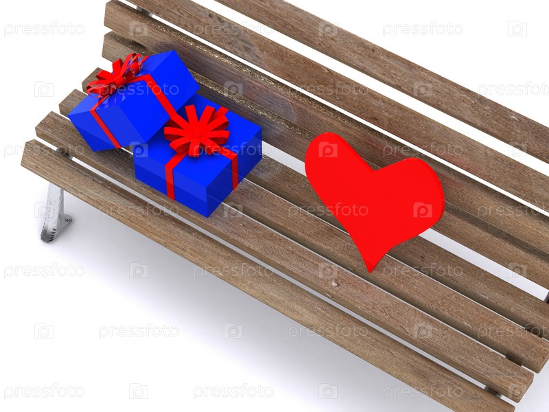 Подарки на скамейке. 3d
