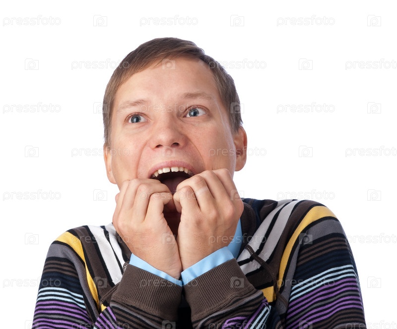 Шокированный молодой человек изолировался на белом фоне