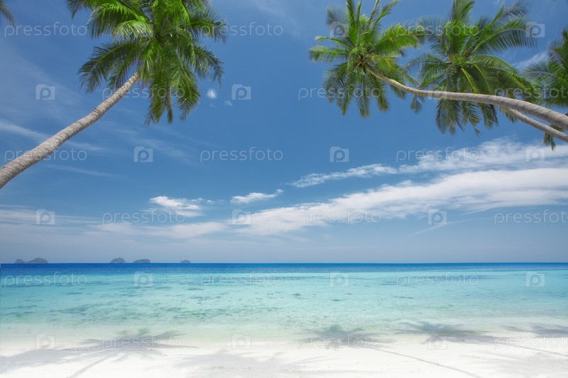 Тропический пляж с пальмами