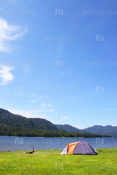 Палатка на берегу озера