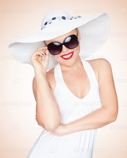 Женщина в шляпе и солнцезащитных очках