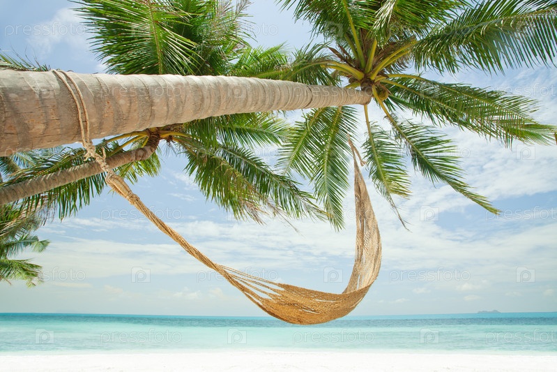 Тропический пляж с пальмами
