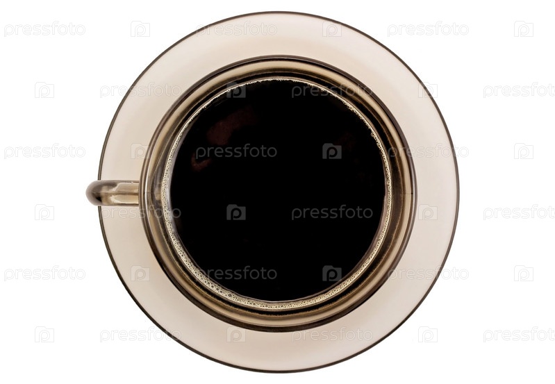 Чашка черного кофе, изолированная на белом фоне, вид сверху