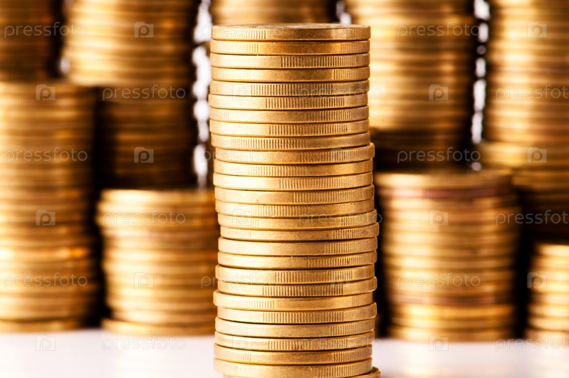 Столбики монет, крупный план