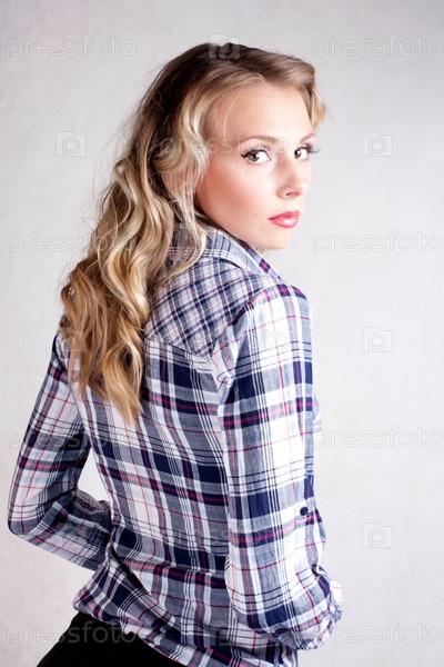 Молодая женщина в клетчатой блузке