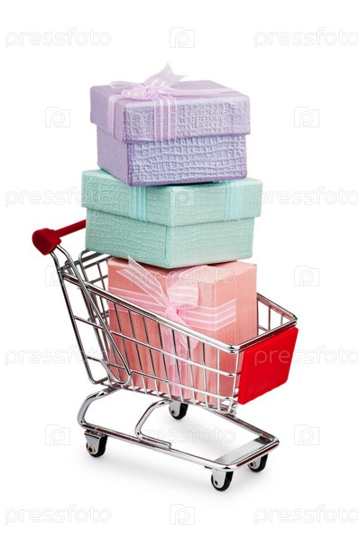 Большие подарочные коробки в тележке