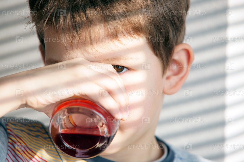 Мальчик пьет сок