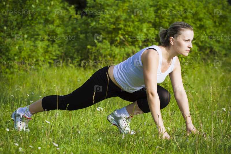Молодая женщина занимается спортом на природе