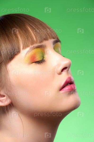 Портрет чувственной молодой женщины с ярким макияжем