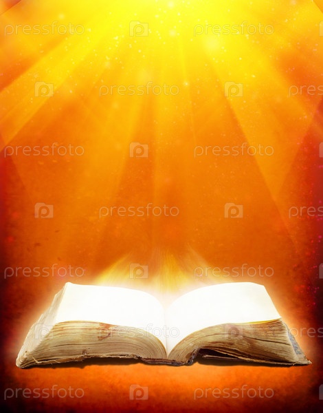 Старая открытая книга в лучах света