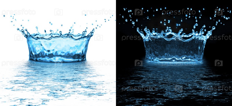 Брызги воды на белом и черном фоне