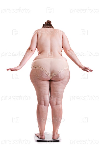 Молодая женщина с ожирением на весах
