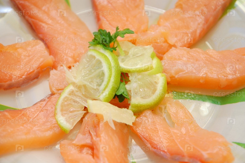 Ломтики лосося с лимоном