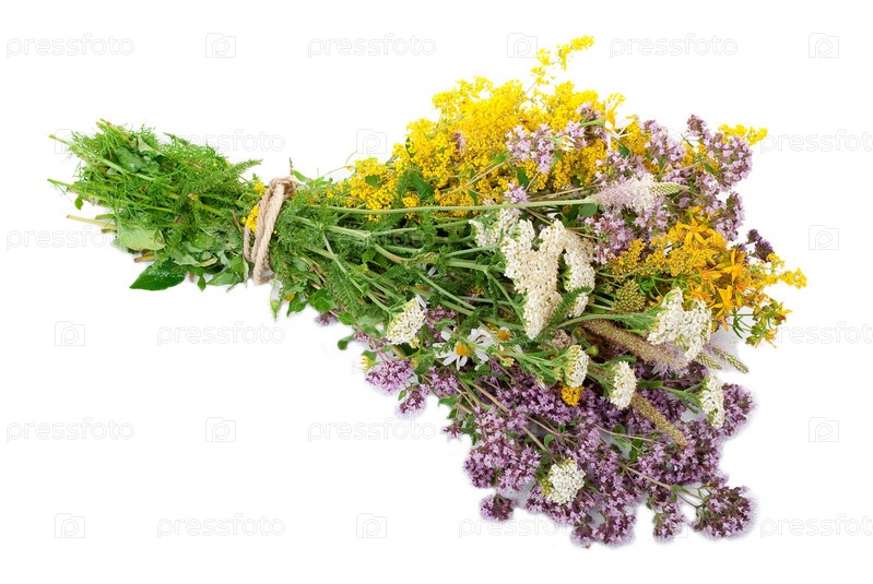 Пучок лекарственных растений на белом фоне