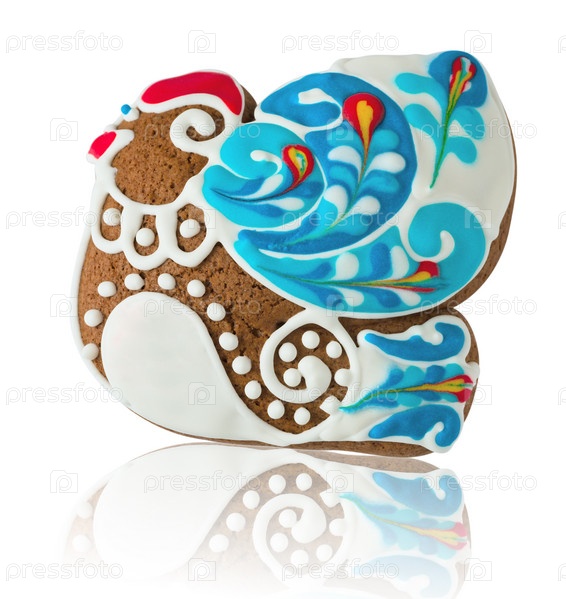 Пряник в виде птицы на белом фоне