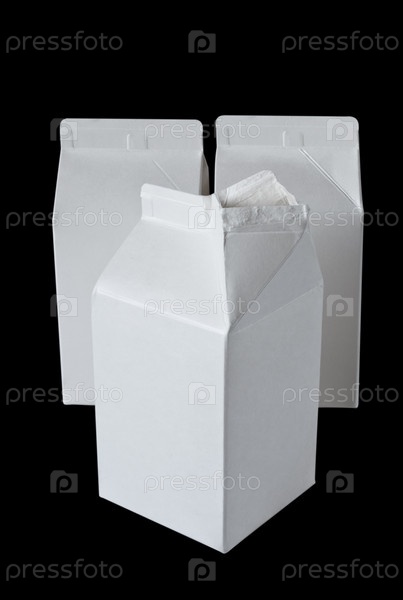 Пакеты молока на поллитра, изолированные на черном фоне