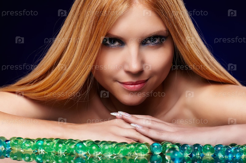 Портрет рыжеволосой голубоглазой девушки с яркими шариками