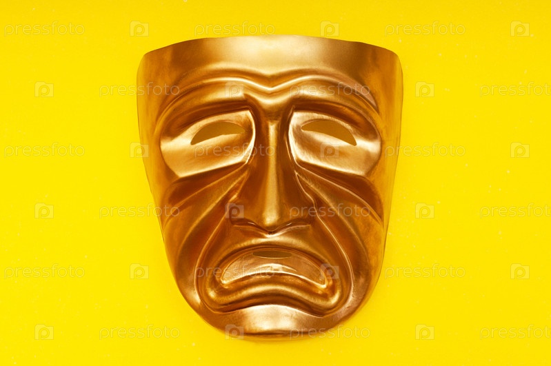 Маска трагедии на желтом фоне