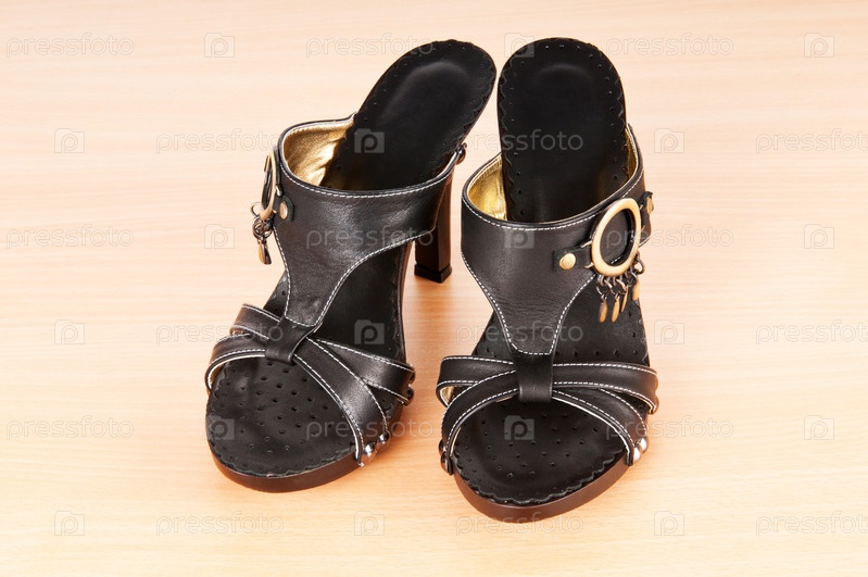 Женские босоножки на деревянной поверхности