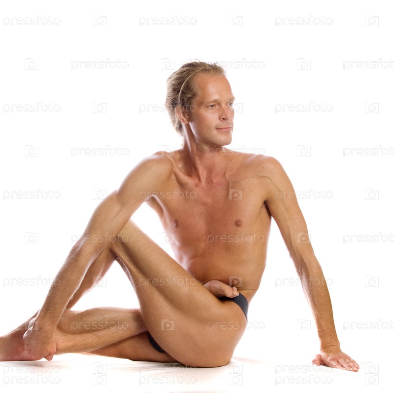 Человек делает йогу изолированной на белом