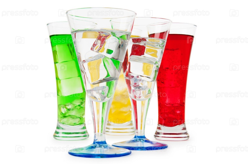 Коктейли с кубиками льда в бокалах