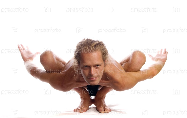 Человек делает йогу изолированной на белом