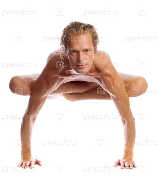Человек делает йогу изолированной на белом
