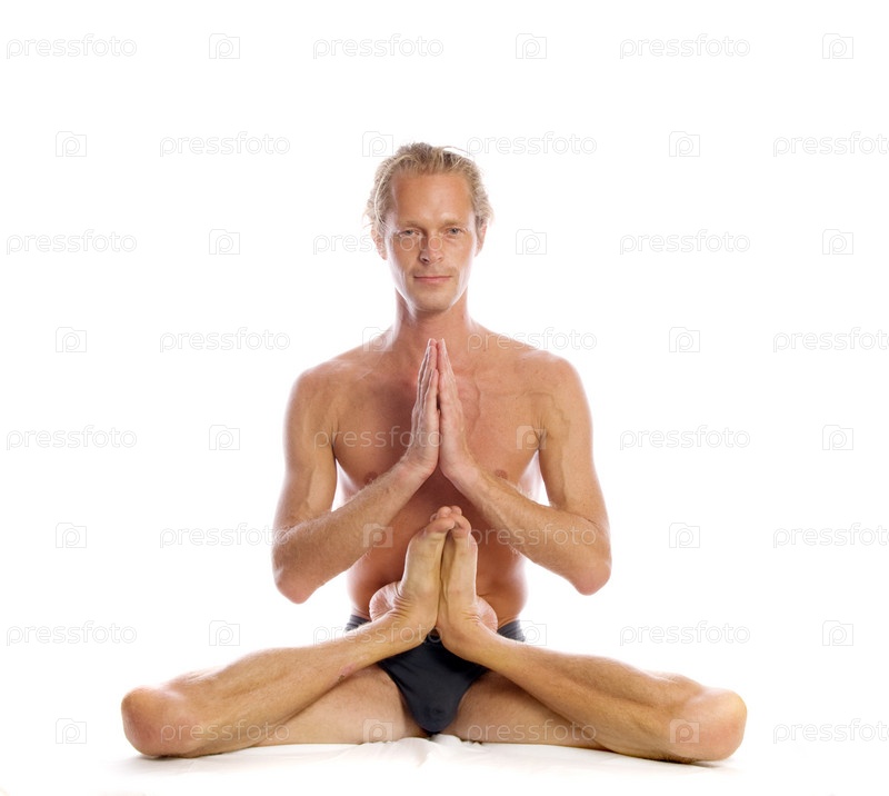 Человек делает йогу изолированной на белом