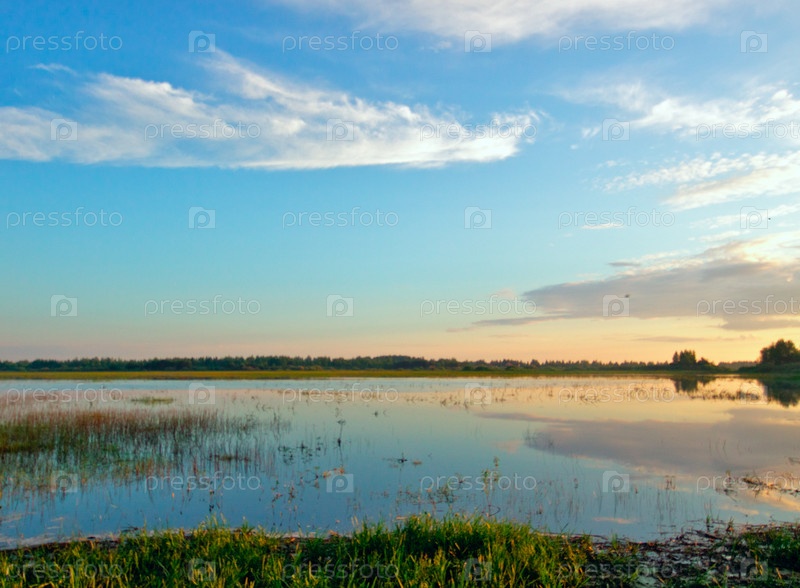 Восход солнца над лесным озером