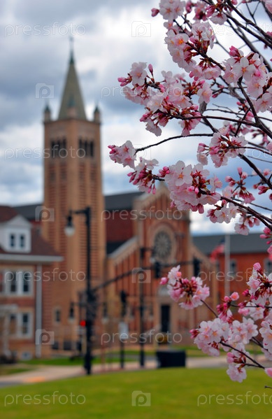 Цветущий куст на фоне собора