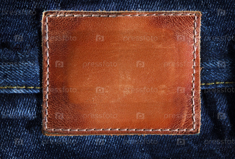 Кожаный ярлык на синих джинсах крупным планом
