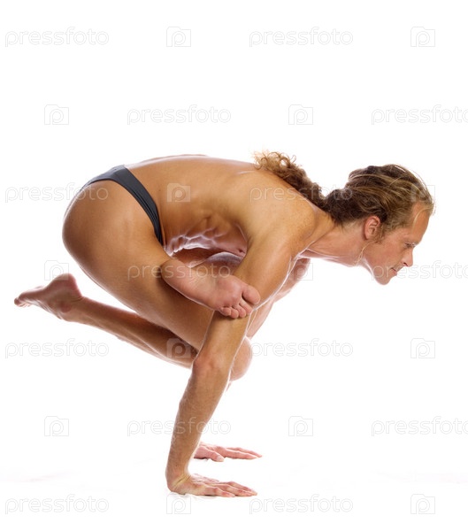 Человек делает йогу изолированной на белом