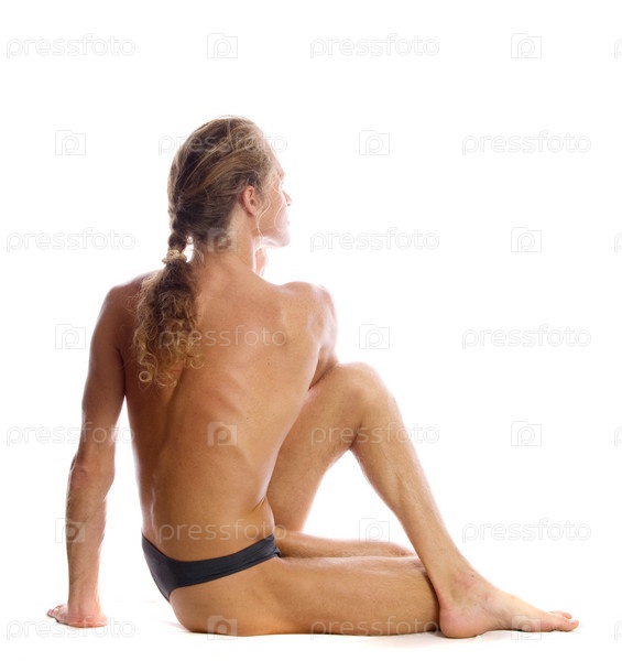 Человек делает йогу изолированной на белом