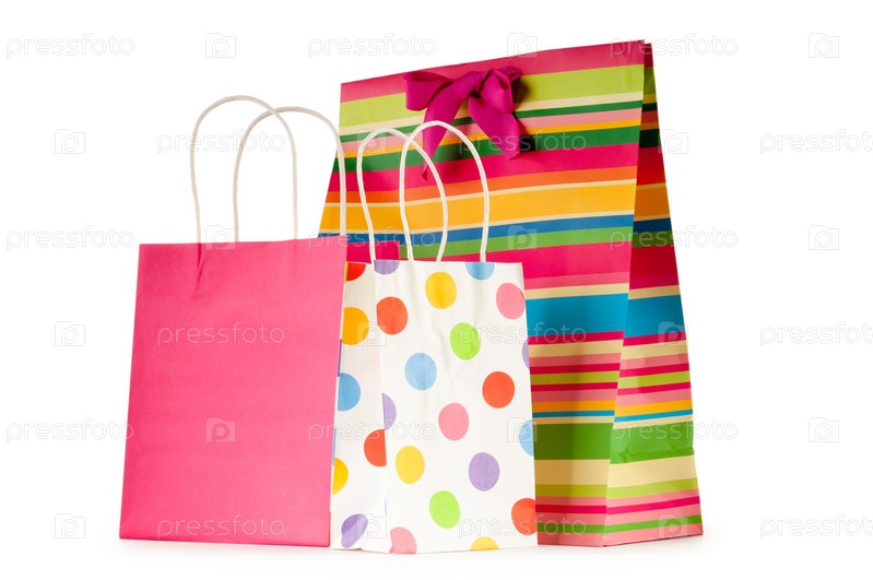 Подарочные пакеты на белом фоне