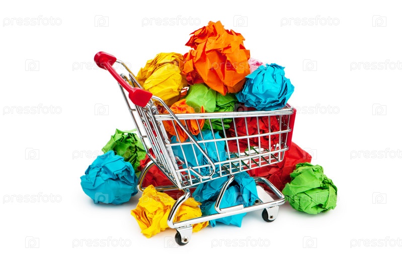 Тележка для покупок, набитая мятой бумагой