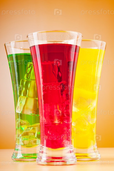 Три красочных коктейля на оранжевом фоне