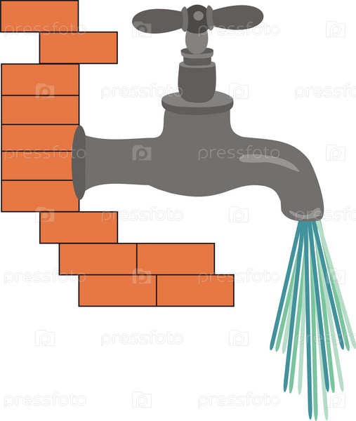 Водопроводный кран, вмонтированный в стену на белом фоне