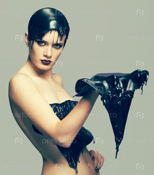 Женщина в платье из расплавленных виниловых пластинок