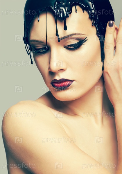 Женщина в головном уборе из расплавленных виниловых пластинок