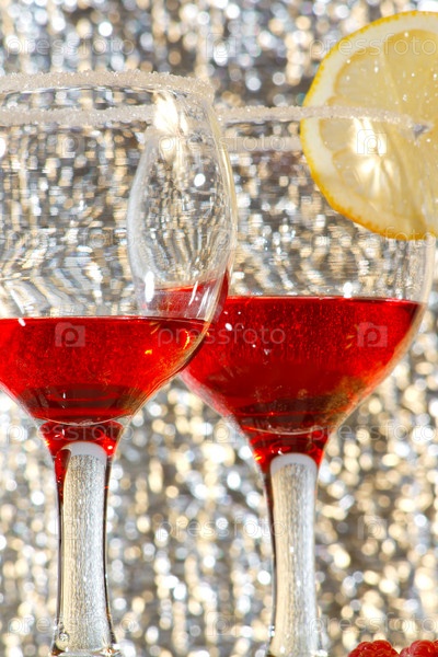 Бокалы с красной жидкостью на блестящем фоне