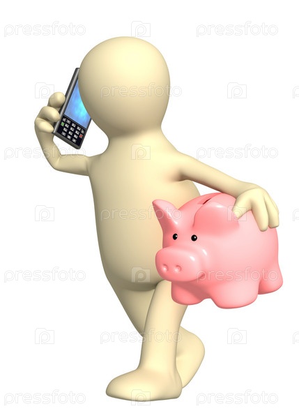 Человечек с копилкой и мобильным телефоном