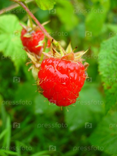 Спелые ягоды малины на веточке