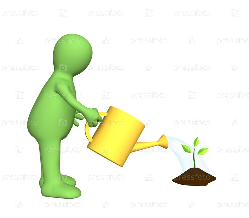 Человек, поливающий растение