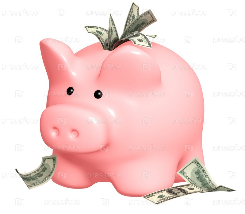Свинья-копилка и долларовые банкноты