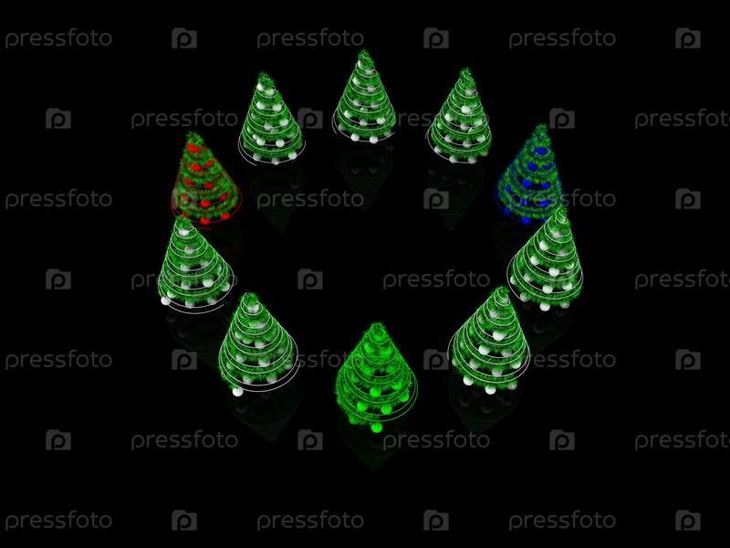Абстракция с нарядными новогодними елками на черном фоне