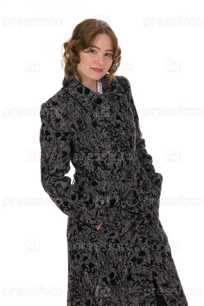 Женщина в пальто на белом фоне