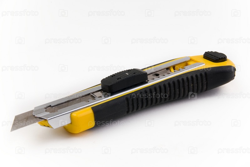 Канцелярский нож на белом фоне