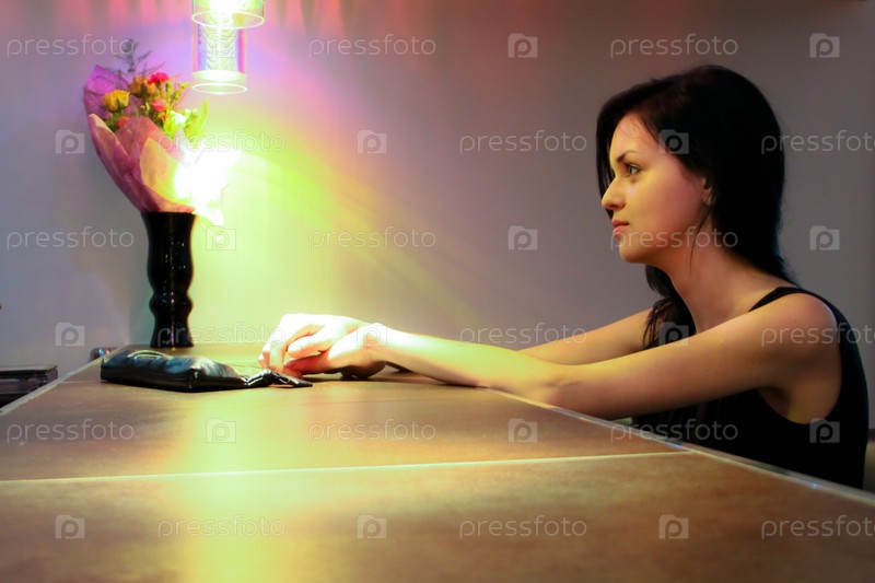 Девушка за столиков в кафе
