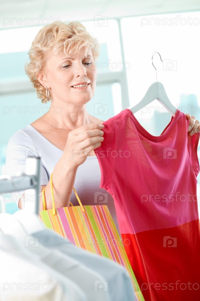 Женщина выбирает одежду в магазине