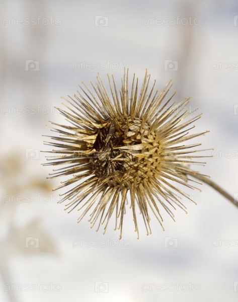 Сухие колючие семена лопуха зимой